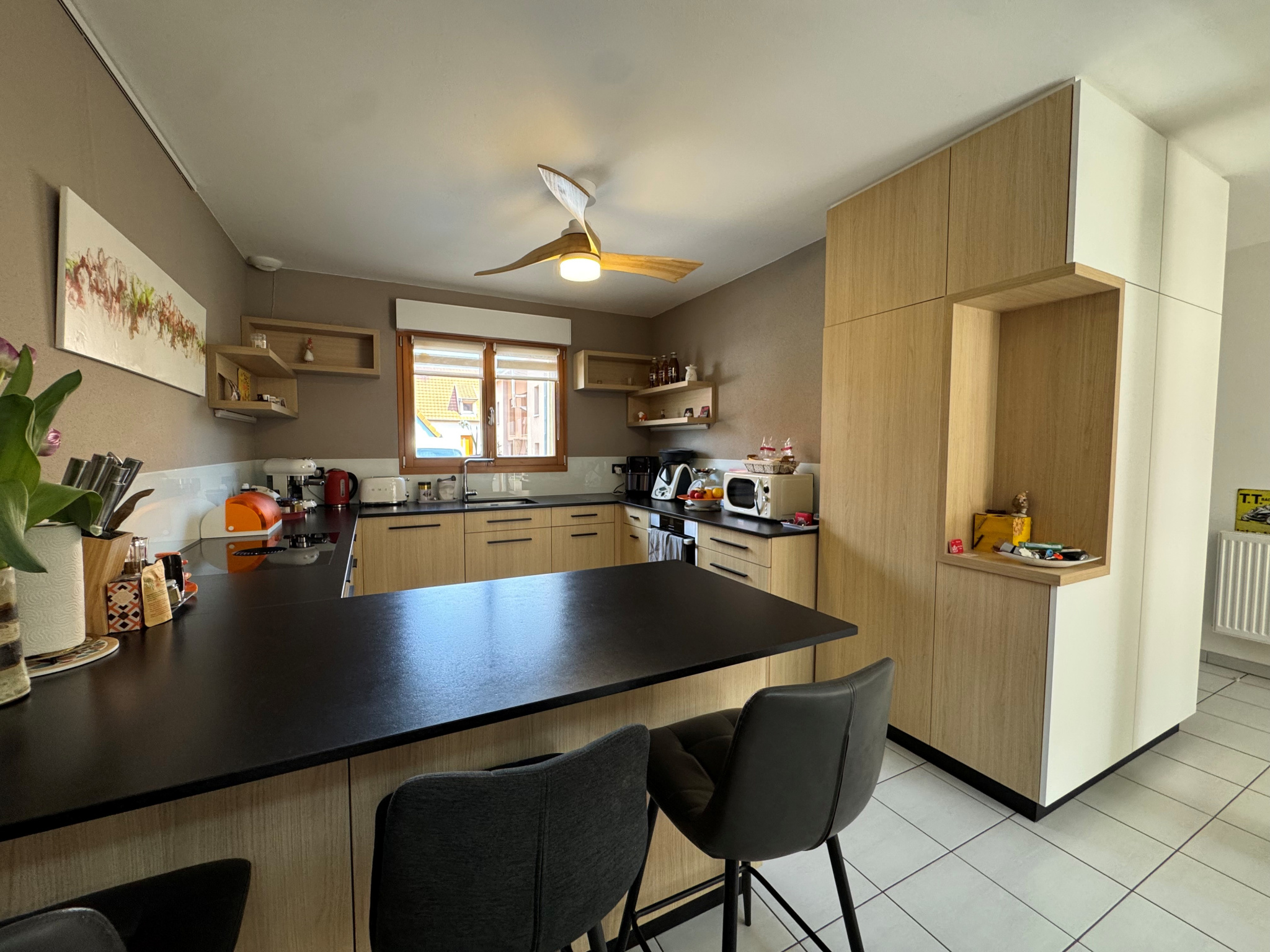 Dietwiller (68440)Venez découvrir cette belle maison jumelée d’un côté, comprenant : un hall d’entrée, un WC séparé, un accès au garage par l’intérieur, ainsi qu’un salon/séjour lumineux avec cheminée à pellets, ouvert sur une belle cuisine entièrement équipée avec coin repas. À l’étage : 3 chambres, dont 2 avec des armoires murales, ainsi qu’une salle de bains avec douche et baignoire.