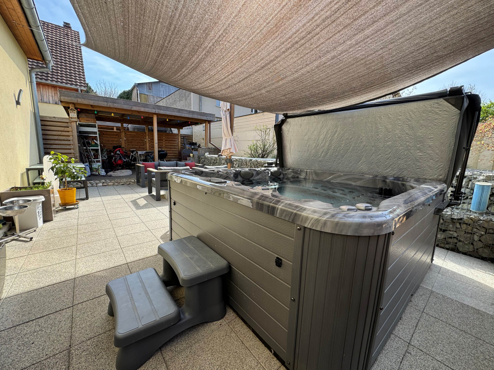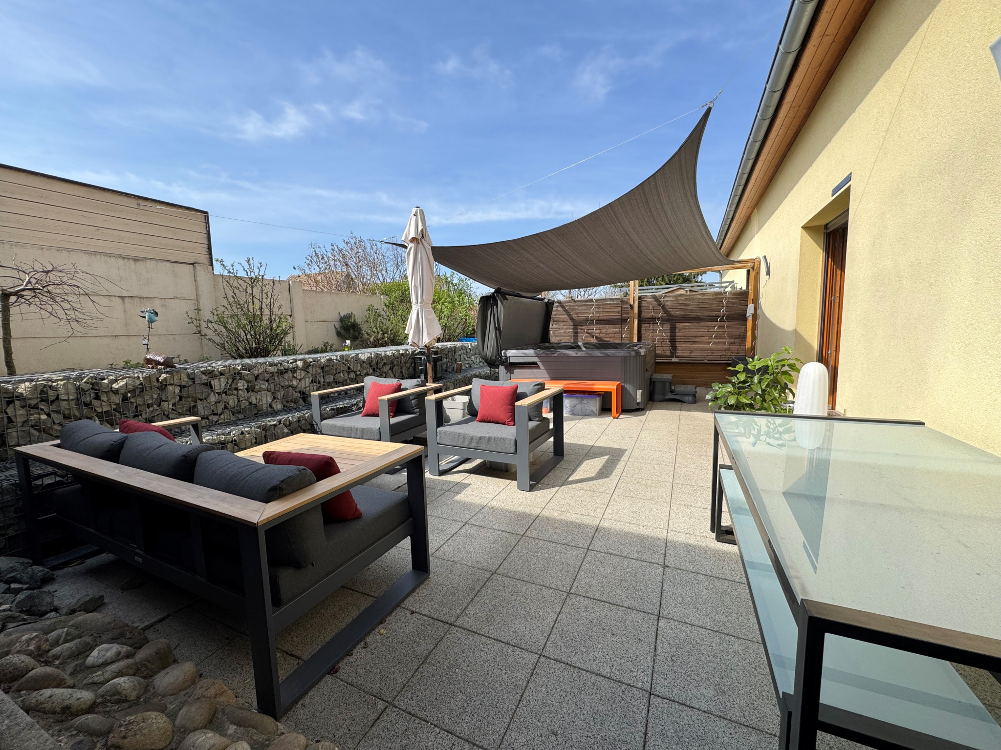 À l’extérieur : une belle terrasse offrant un coin détente ainsi qu’un espace repas. Un carport ainsi que 2 places de parking complètent ce bien.